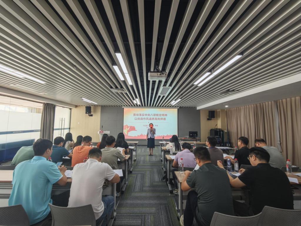 开班仪式结束后,贝博官网马克思主义学院李霞教授以《贯彻落实中央八项规定精神,以优良作风涵养高尚师德》为题作开班第一课,通过系统阐释中央八项规定精神,引导教师强化作风建设,为锻造一支风清气正、德才兼备的育人铁军夯实基础。